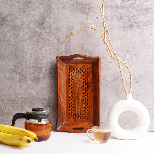 Handcrafted Sheesham Wood With Brass Work Serving Tray
